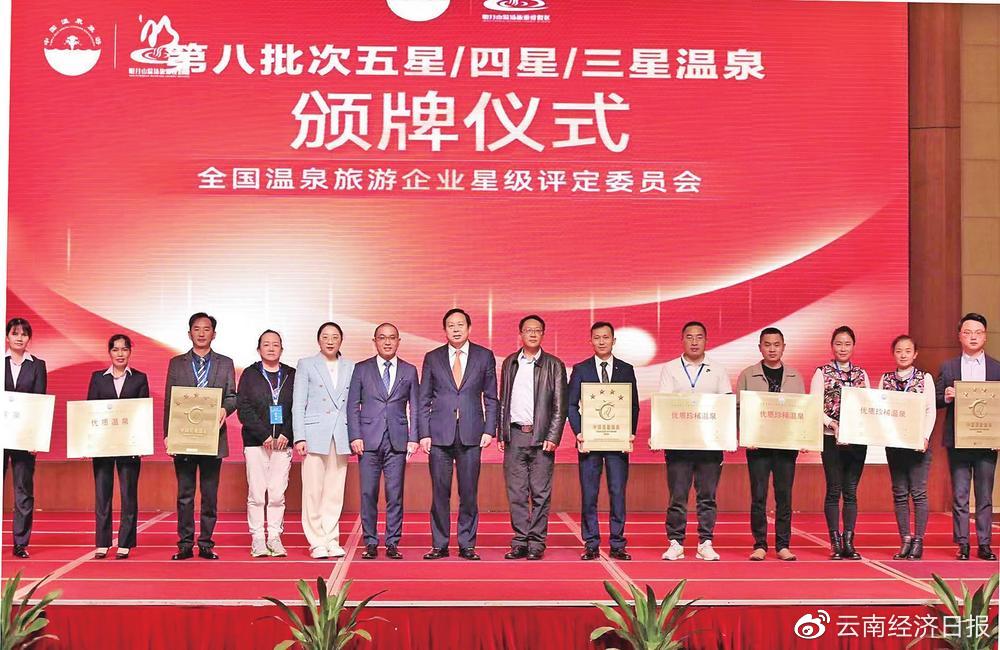 2月26日至28日,第九届中国温泉旅游推广季在江西明月山举行。期间,活动主办方颁发了第八批国家级星级温泉旅游企业和第二批国家级温泉泉质认证牌匾。通过企业申报、省级初评、国家终评等评定程序并完成公示,全国共有12家温泉旅游企业被认定为第八批国家级星级温泉旅游企业,有57个温泉检测点的泉质通过第二批次国家级认证。其中,云南省新增3家高星级温泉企业,新增7家国家级温泉泉质等级认证企业。